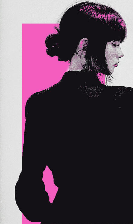 β HAIR.β β β black hair cut into a blunt bob at her chin, kept straight and accessorized with a golden butterfly hairpin.